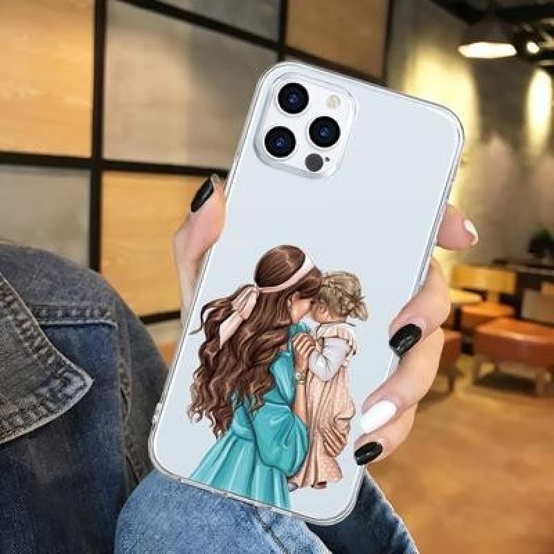 Черный Коричневый Ребенок Мама Девочка Волосы Мягкий TPU Чехол для iPhone 13 12 11 XS Pro Max XR X 7